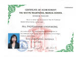 Photchanart Weinmann ist stolze Inhaberin des renommierten Wat Po Zertifikats, das eine erstklassige Ausbildung in der traditionellen thailändischen Massage bescheinigt. Dieses Zertifikat wird an Therapeuten vergeben, die die Standards der berühmten Wat Po Schule in Bangkok, Thailand, erfolgreich durchlaufen haben. Diese Schule ist eine der ältesten und angesehensten Einrichtungen für die Lehre der Thai-Massage und steht für höchste Qualität und Professionalität.